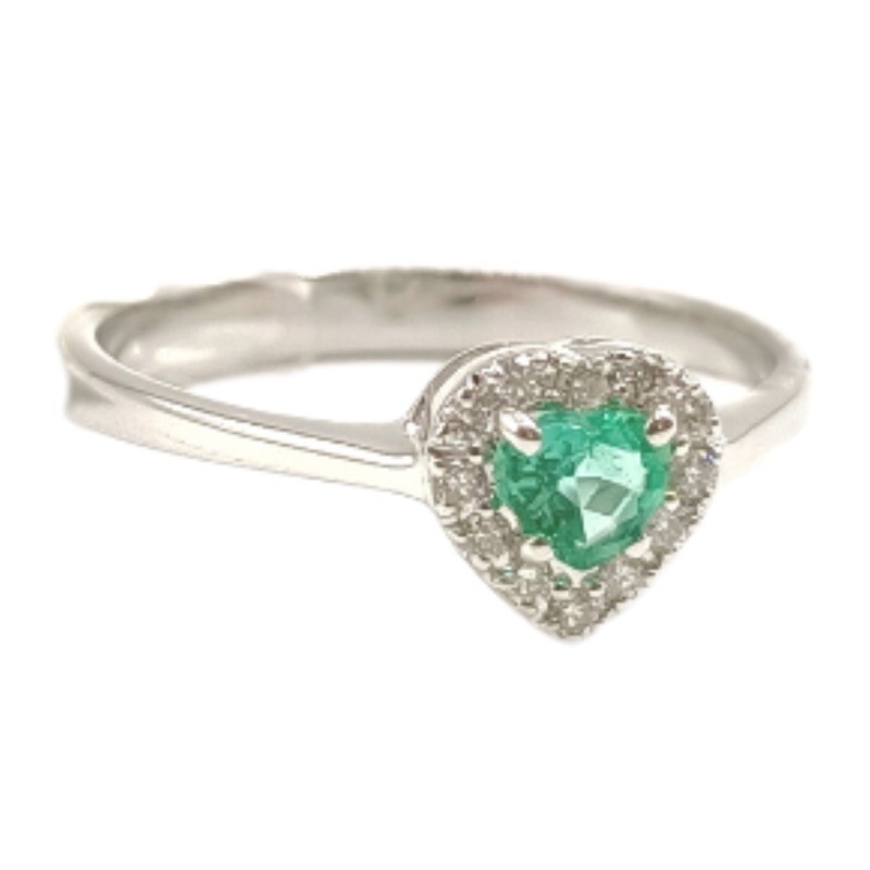 Anello solitario in Oro 18 kt con Smeraldo da 0,22 ct e Brillantini 0,09 G-VS - Questo articolo verrà spedito col suo particolare astuccio.