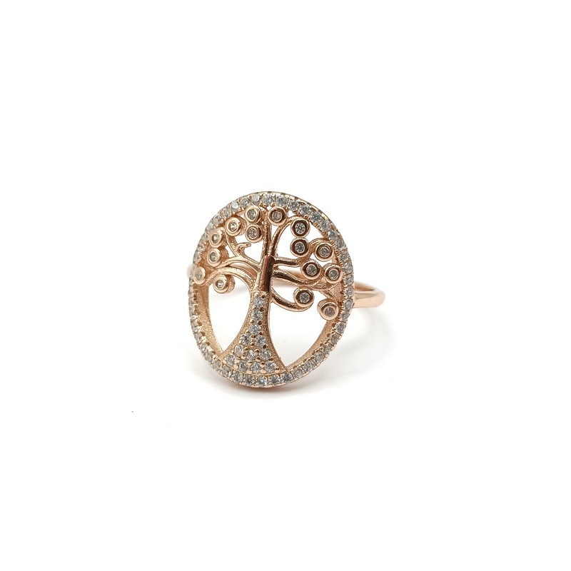 anello donna in argento rosato 925% albero della vita. zirconi naturali. nichel free.