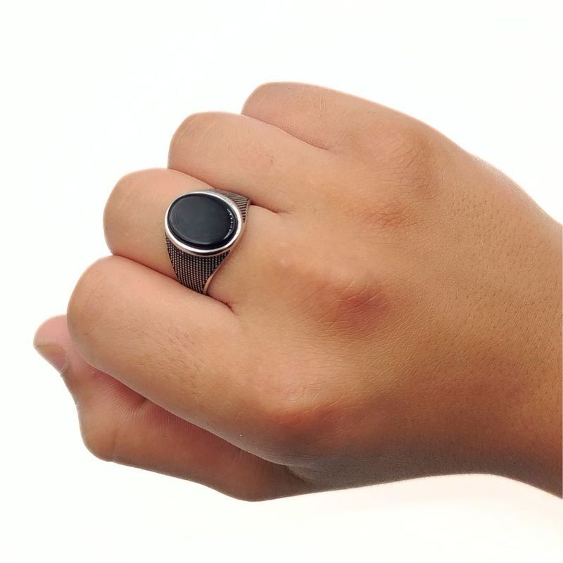 Anello uomo in argento con onice nera. L'articolo verrà spedito nel suo particolare astuccio X LUI e certificato di qualità che ne attesta il materiale.