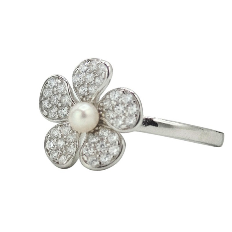 anello fiore in argento con perla e zirc. mod. R1766