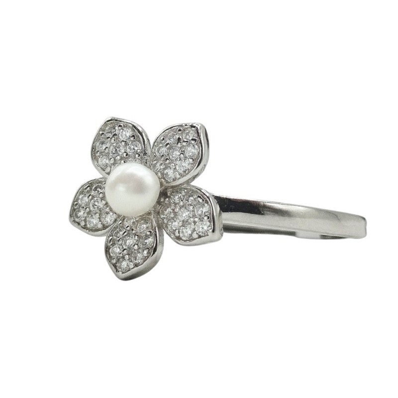 Anello fiore in argento 925 con perla e zirconi naturali. Linea KAMALII X LEI. L'articolo verrà spedito in confezione originale IL GIOIELLO DI PANI.
