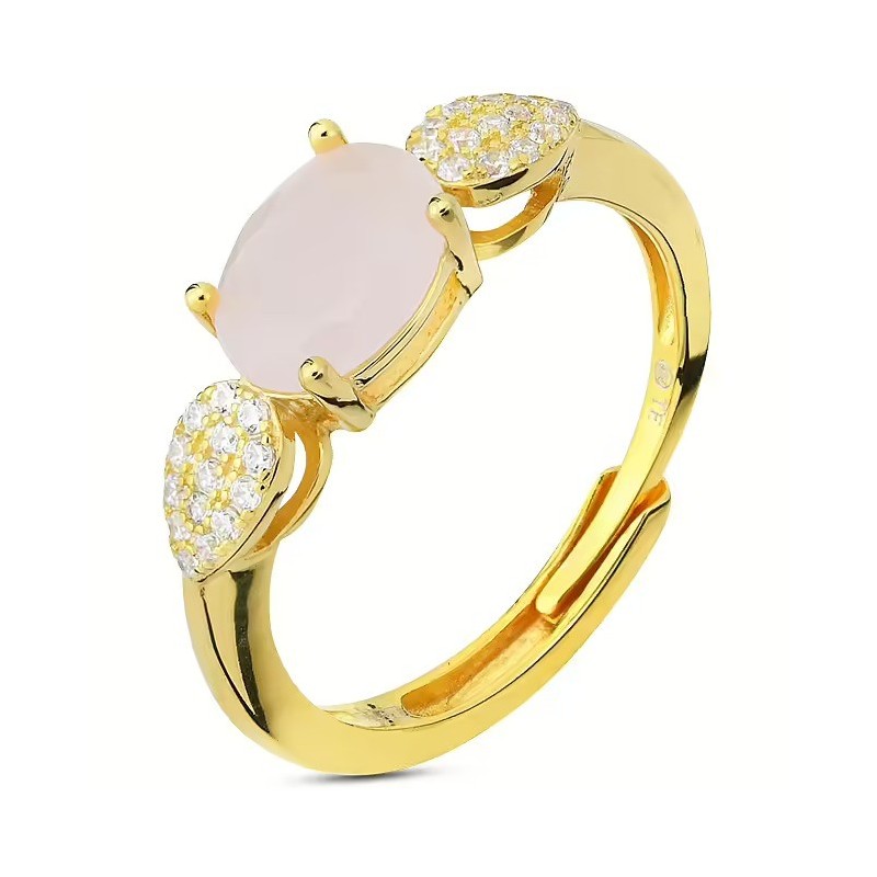Anello regolabile in argento, placcato oro giallo, con cristallo color quarzo rosa e zirconi. L'articolo verrà spedito in confezione originale BOCCADAMO.