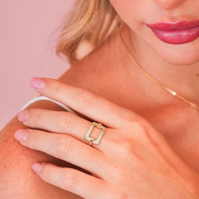 Anello in argento 925 placcato oro giallo con modulo centrale a forma di rettangolo in pavè di zirconi naturali. Collezione BOCCADAMO. L'articolo verrà spedito in confezione originale BOCCADAMO.