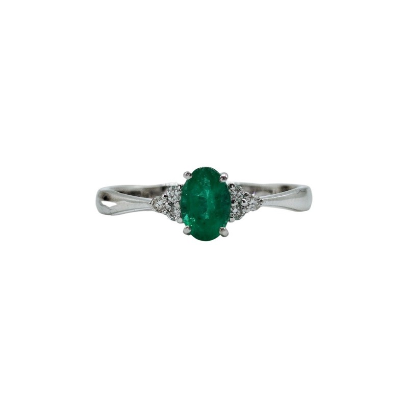 Anello in oro 18 kt con smeraldo naturale taglio ovale da 0,50 ct. e diamanti taglio brillante G VS 0,09 ct. L'articolo verrà spedito in confezione originale.