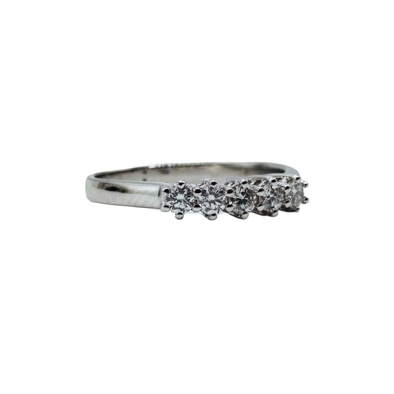Anello veretta in oro 18kt con 5 diamanti taglio brillante G VS da 0,26 ct. Anello elegante e versatile, perfetto per ogni occasione. L'articolo verrà spedito in confezioni originale.