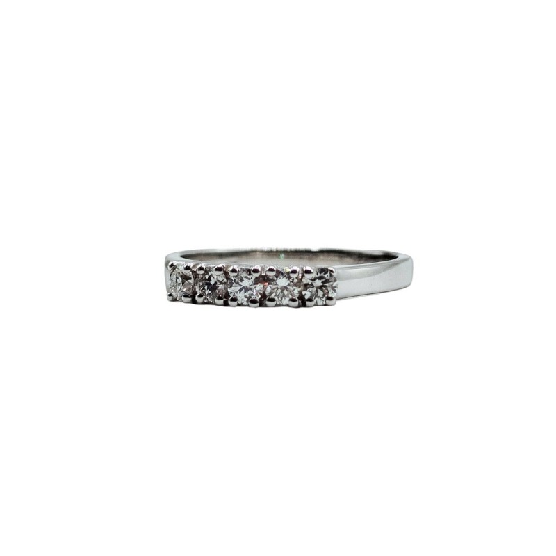 Anello veretta in oro 18kt con 5 diamanti naturali G VS 0,45 ct. Un gioiello pensato per accompagnarti ogni giorno, con un’eleganza naturale e senza tempo. L'articolo verrà spedito in confezione originale.