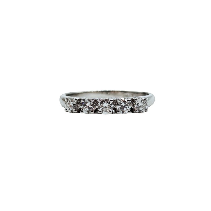 Anello veretta in oro 18kt con 5 diamanti taglio brillante G VS 0,51 ct. Lavorazione artigianale e materiali pregiati per un anello unico nel suo genere. L'articolo verrà spedito in confezione originale.