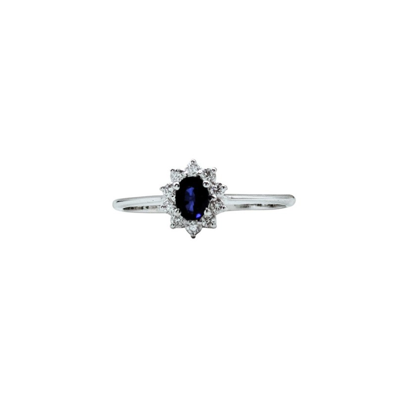 Anello in oro 18kt con zaffiro naturale taglio ovale da 0,35 ct. e diamanti taglio brillante G VS 0,12 ct. Anello elegante e versatile, perfetto per ogni occasione. L'articolo verrà spedito in confezione oriignale.