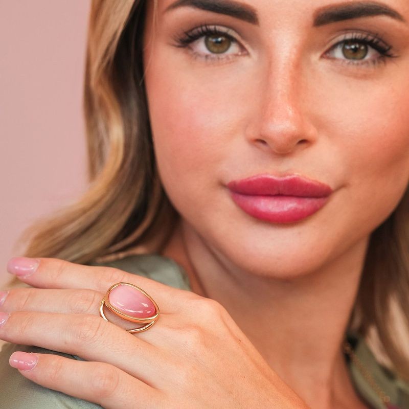 Anello placcato oro giallo con cristallo centrale, taglio cabochon, di colore rosa shocking. L'articolo verrà spedito in confezione originale BOCCADAMO.