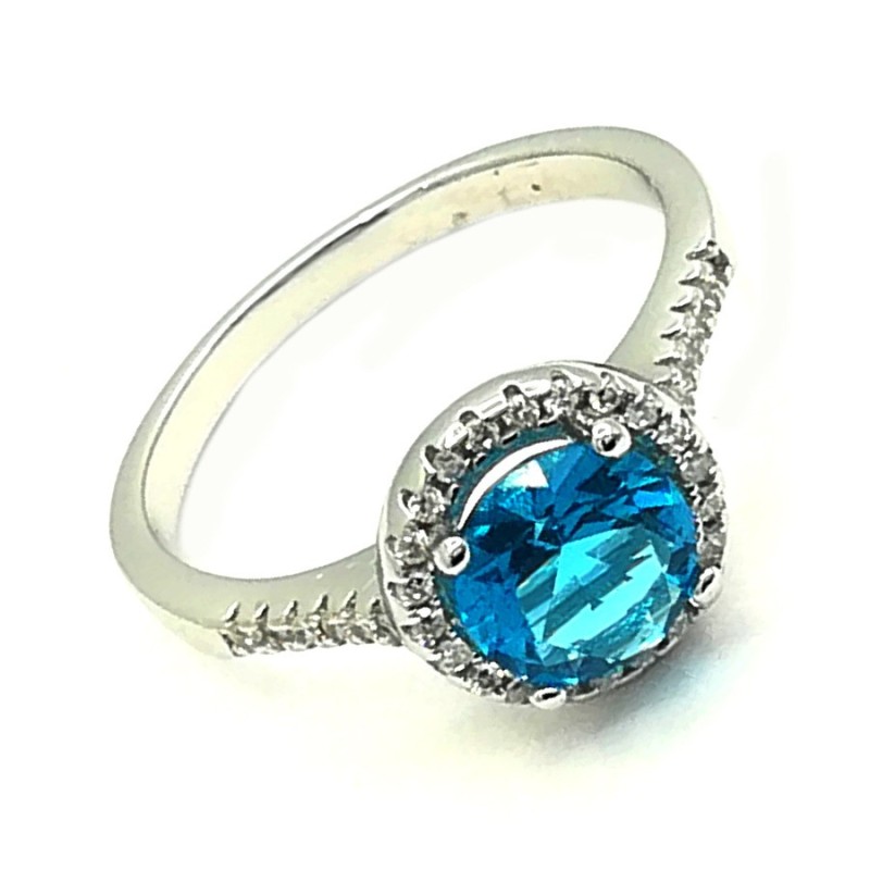 anello tondo in argento 925% zirconi naturali bianchi e zircone centrale colorato: blu, acqua marina, rosa, bianco. nichel free