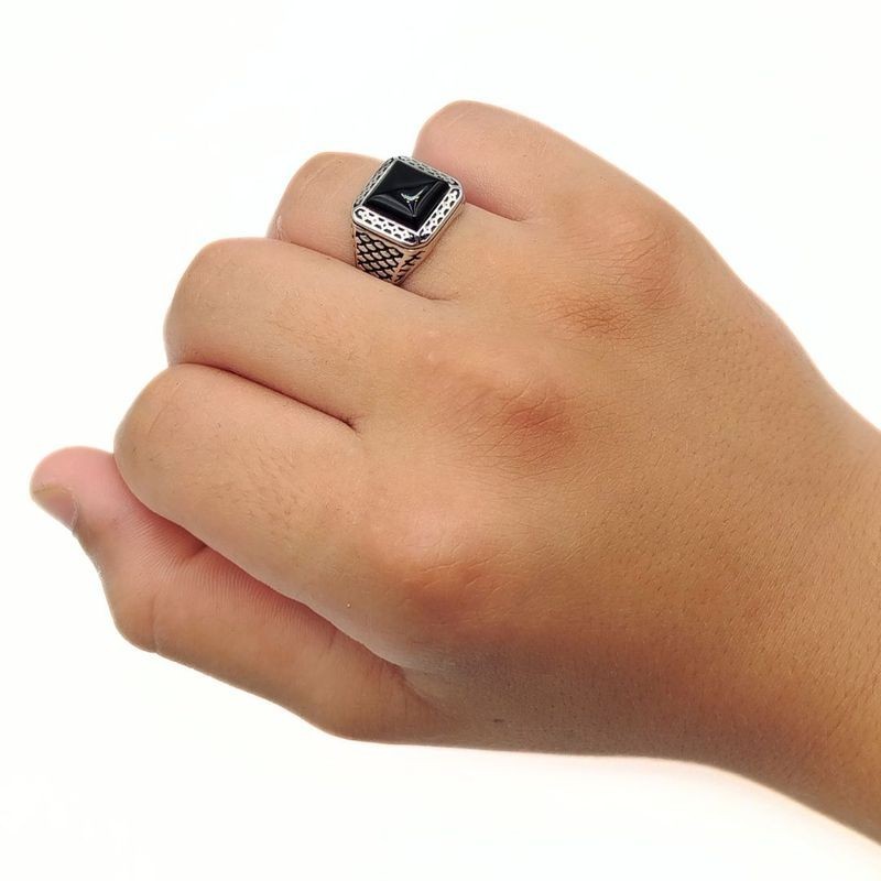 Anello uomo in argento con onice nera. L'articolo verrà spedito nel suo particolare astuccio X LUI e certificato di qualità che ne attesta il materiale.