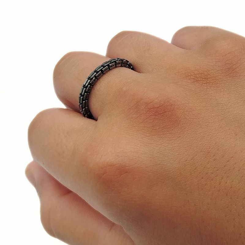 Anello elastico in argento invecchiato, uomo. L'articolo verrà spedito nel suo particolare astuccio X LUI e certificato di qualità che ne attesta il materiale.