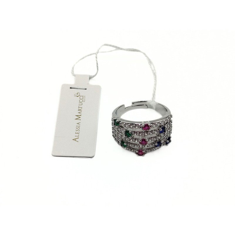 Anello in bronzo con zirconi naturali bianchi e colorati. Misura regolabile. Collezione ALESSIA MARTUCCI. L'articolo verrà spedito in confezione originale.