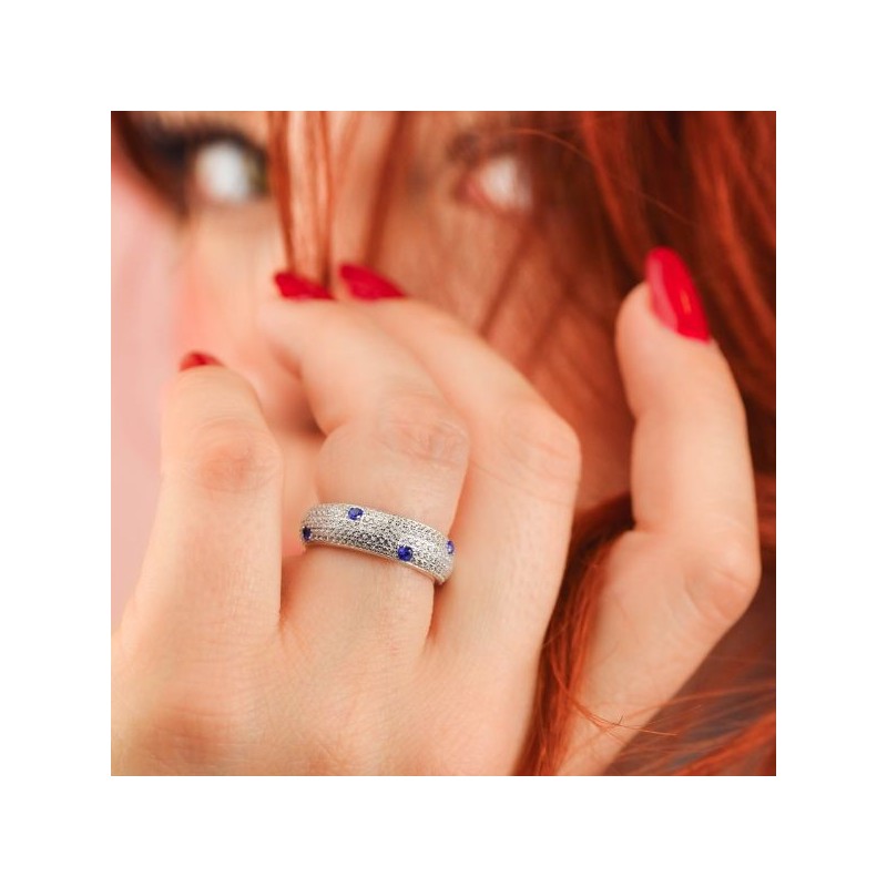 Anello di Boccadamo da donna della linea Jewels e della collezione Sophie. Anello in argento grande con fascia interna regolabile e centrale di pavè di zirconi di colore bianco e blu. Misura: regolabile dalla 15 alla 19. Questo anello verrà spedito con Scatola Originale Boccadamo.