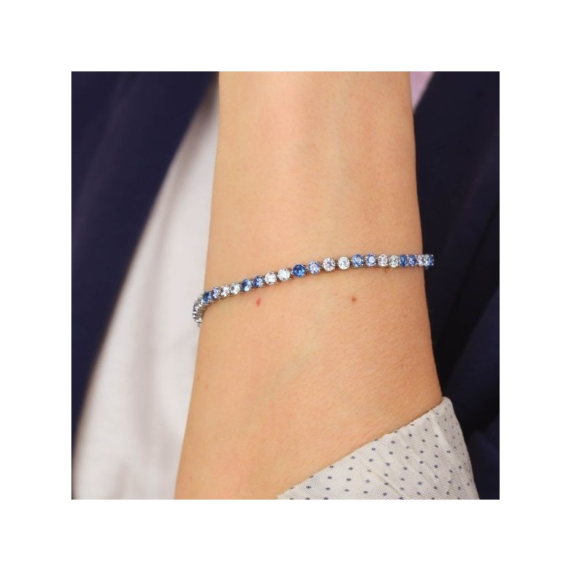 Bracciale di Boccadamo da donna della linea Jewels e della collezione Sophie. Bracciale in argento modello tennis con zirconi di colore rosa, tanzanite, acquamarina, bianco. Misura: lunghezza cm 17 estendibile fino a cm 20.Questo bracciale verrà spedito con Scatola Originale Boccadamo.