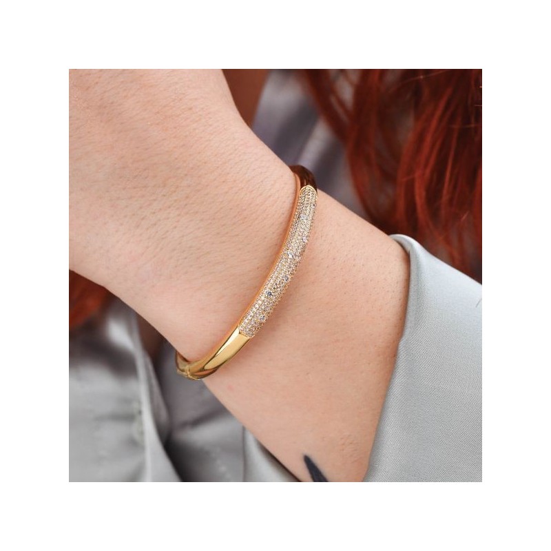 Bracciale di Boccadamo da donna della linea Jewels e della collezione Sophie. Bracciale rigido in argento placcato oro giallo con centrale di pavè di zirconi di colore bianco. Misura: ovale cm 5,8x5 e dimensione: spessore pavè mm 5,5.Questo bracciale verrà spedito con Scatola Originale Boccadamo.