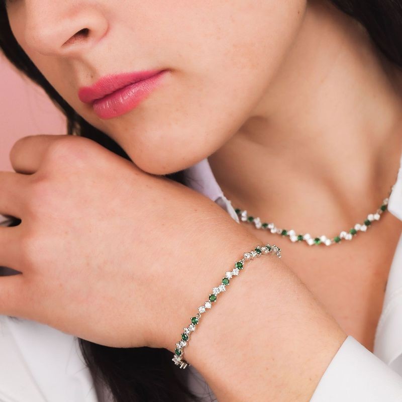 Bracciale rigido in argento 925 con cinque moduli di zirconi naturali a baguette di colore bianco e smeraldo. L'articolo verrà spedito in confezione originale BOCCADAMO.