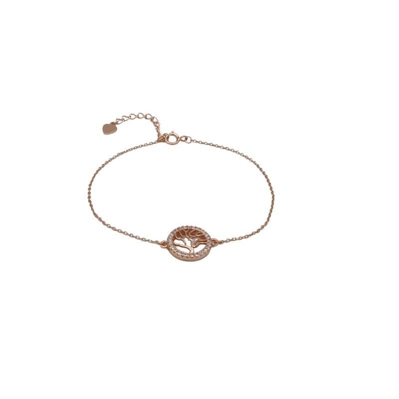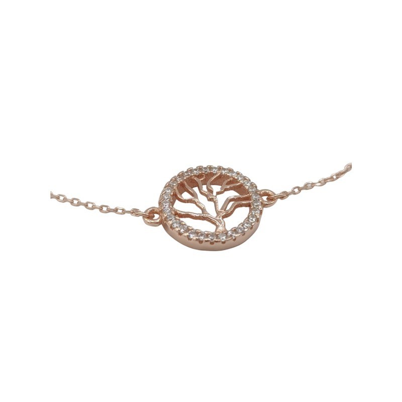 Bracciale con Albero della vita in Argento 925/°°° e zirconi naturali , disponibile nella variante rosata o dorata. Chiusura con moschettone .