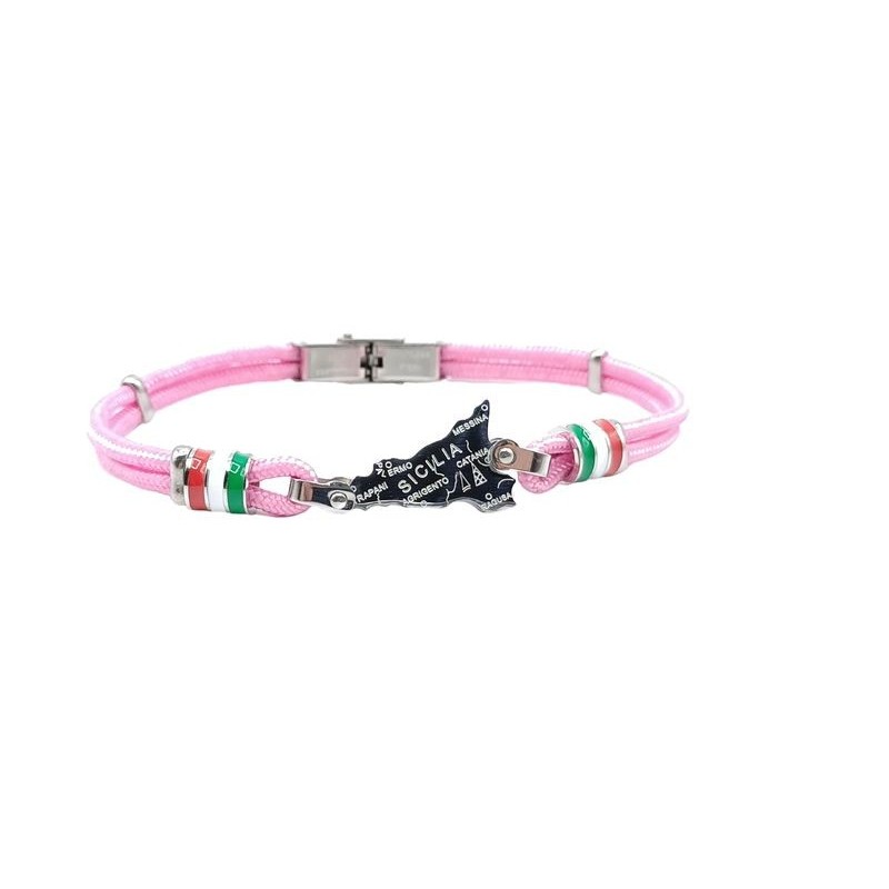 bracciale sicilia in acciaio 316l con cordoncino colorato.