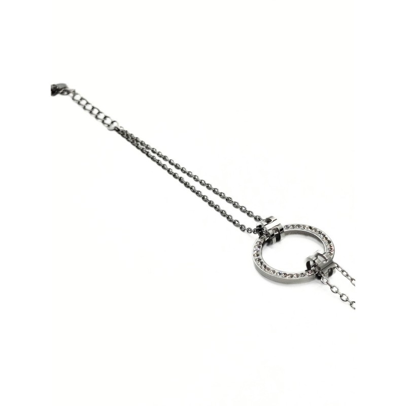 Bracciale in acciaio con elemento tondo e zirconi naturali. L'articolo verrà spedito in confezione originale IL GIOIELLO DI PANI.