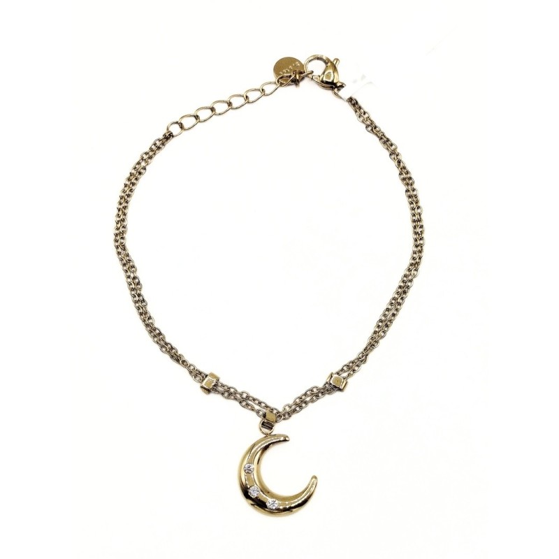 Bracciale in acciaio dorato con elemento mezza luna e zirconi naturali. L'articolo verrà spedito in confezione originale IL GIOIELLO DI PANI.