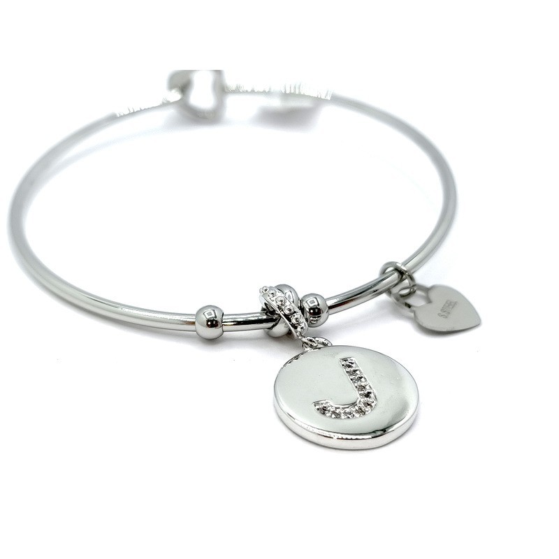 Bracciale semirigido in acciaio con iniziale e zirconi naturali. L'articolo verrà spedito in confezione originale IL GIOIELLO DI PANI.