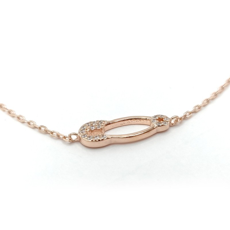 bracciale donna in argento 925% rosato .spilla da balia con zirconi naturali.-nichel free