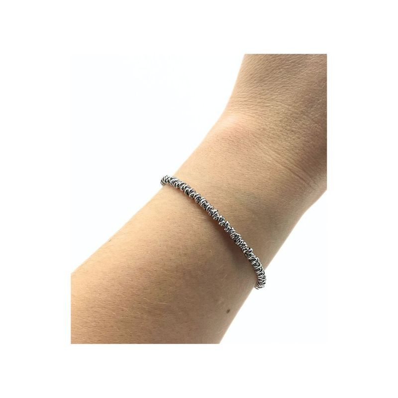 Bracciale in argento snodato con rondelle, con chiusura a moschettone. Questo articolo verrà spedito con scatola originale Il Gioiello di Pani.