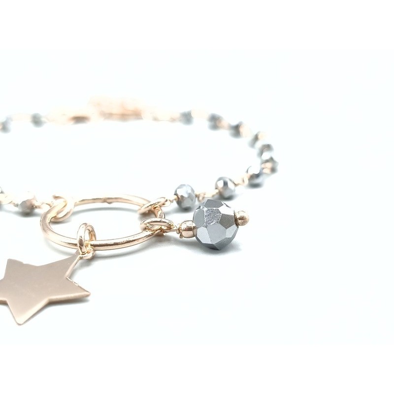 Bracciale Stella pendente in Argento 925/°° Rosato con pietre grigie. L'articolo verrà spedito in confezione originale IL GIOIELLO DI PANI.