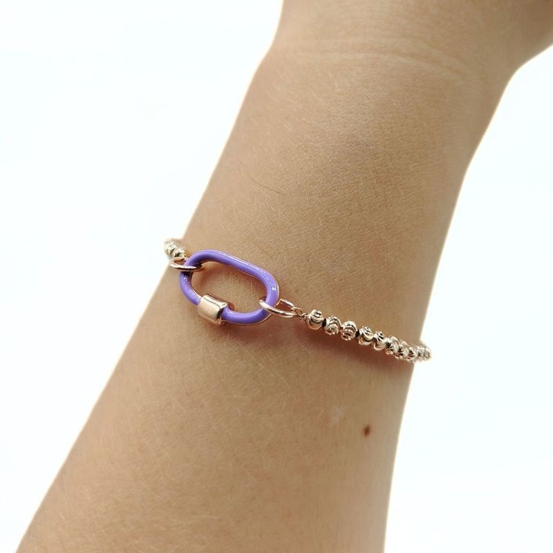 Bracciale in Argento 925 Rosato con Elemento centrale Ovale di colore Rosa o Viola. Questo Articolo fa parte della collezione Shiny della Linea Per Lei e verrà spedito con il suo particolare Astuccio.
