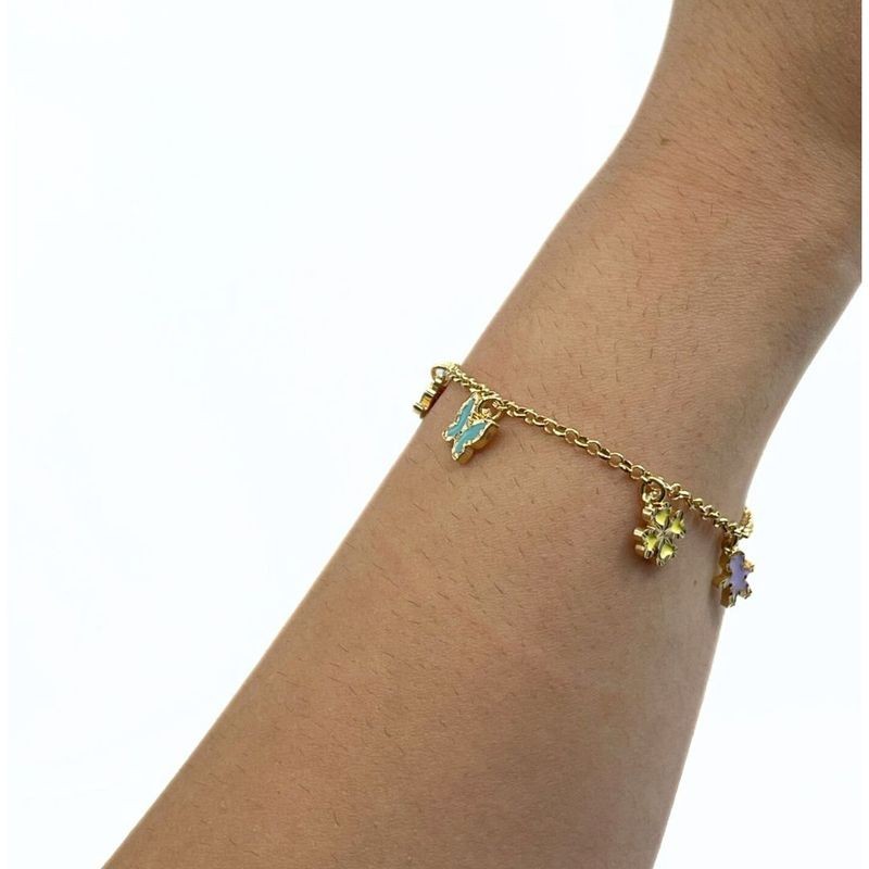 Bracciale con pendenti quadrifoglio, elefante, farfallae bimba in argento con chiusura moschettone. Fa parte della linea Kamali. Questo articolo verrà spedito con scatola X LEI.