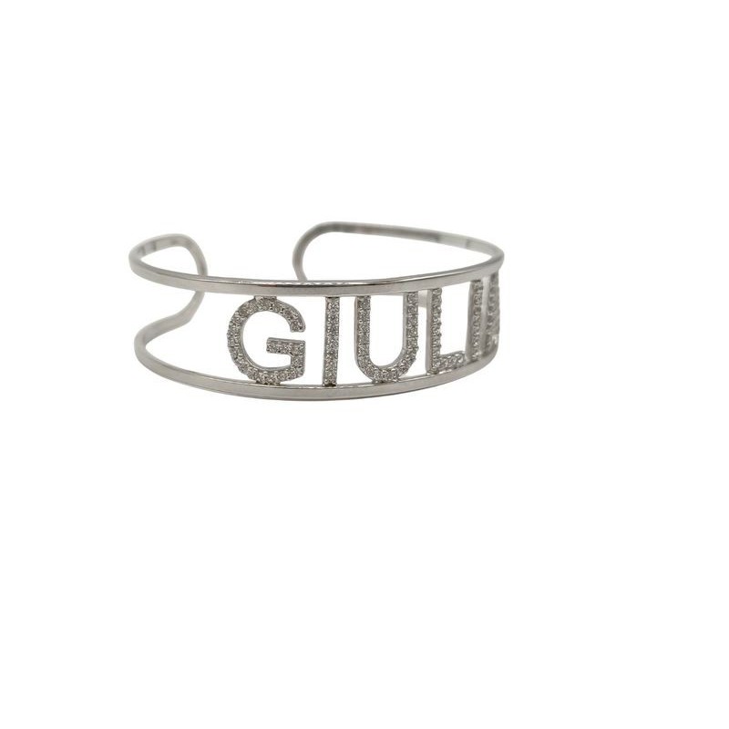 Bracciale rigido con nome in argento 925% e zirconi naturali . Disponibilità di realizzarlo con il nome che desideri e con la variante di colore che preferisci.unica misura .al momeno dell'ordine , scrivi nelle note tutti i dettagli .