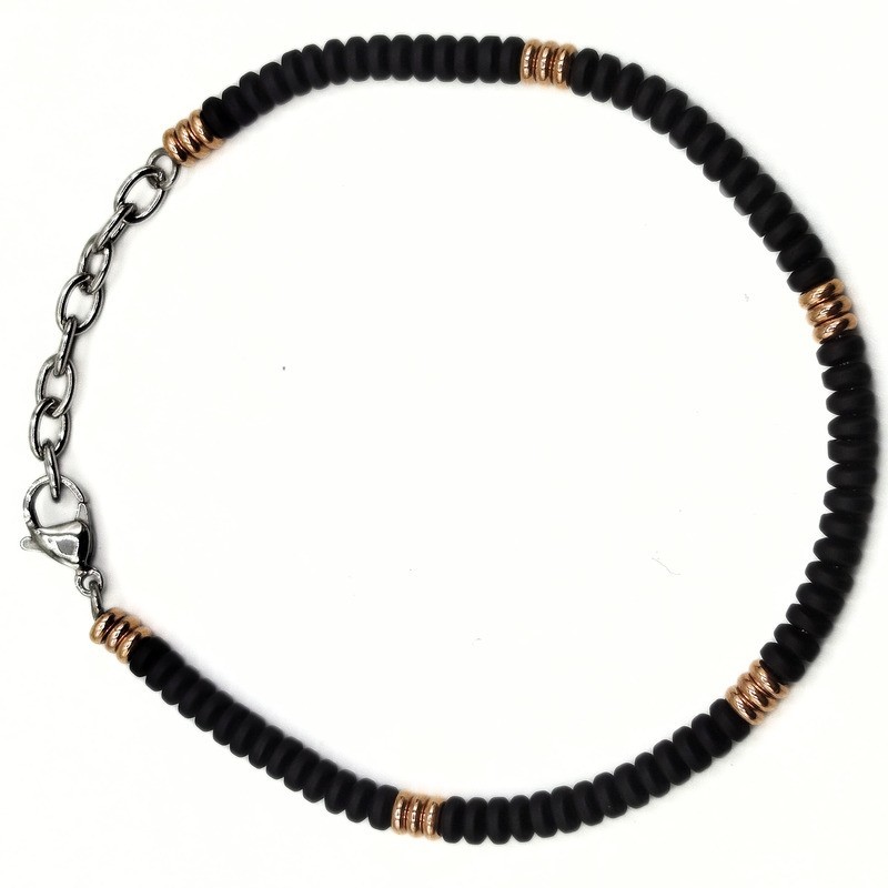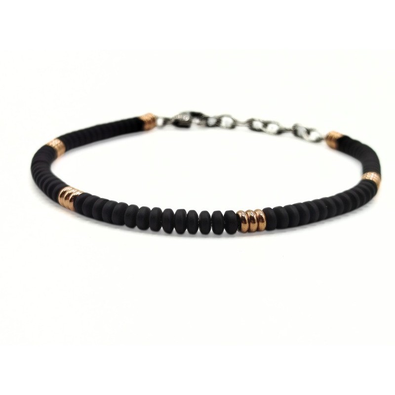 Bracciale in acciaio con cerchi neri e rosè della linea DETTAGLI. L'articolo verrà spedito in confezione originale IL GIOIELLO DI PANI.