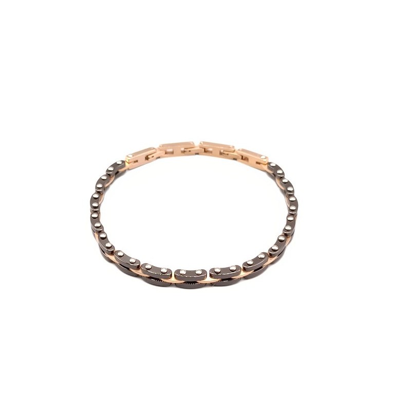 Bracciale uomo acciaio 316L rosato e ceramica nera L'articolo verrà spedito nel suo particolare astuccio X LUI e certificato di qualità che ne attesta il materiale.