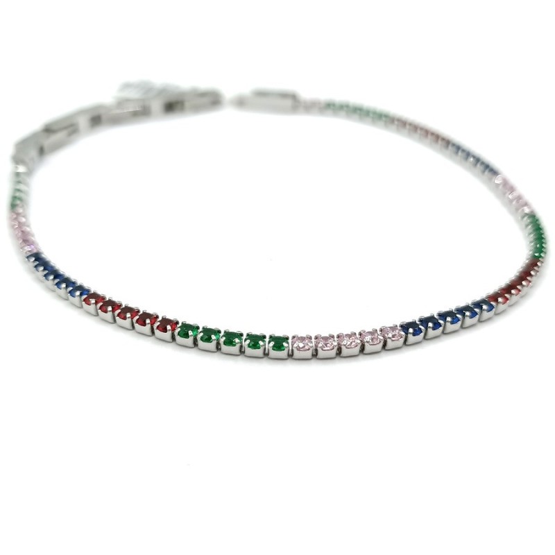 bracciale donna in acciaio 316l modello tennis multicolor con zirconi naturali . chiusura a clip regolabile .