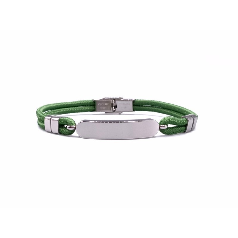 Bracciale piastra in acciaio 316l con cordoncino verde. L'articolo verrà spedito in confezione originale IL GIOIELLO DI PANI.