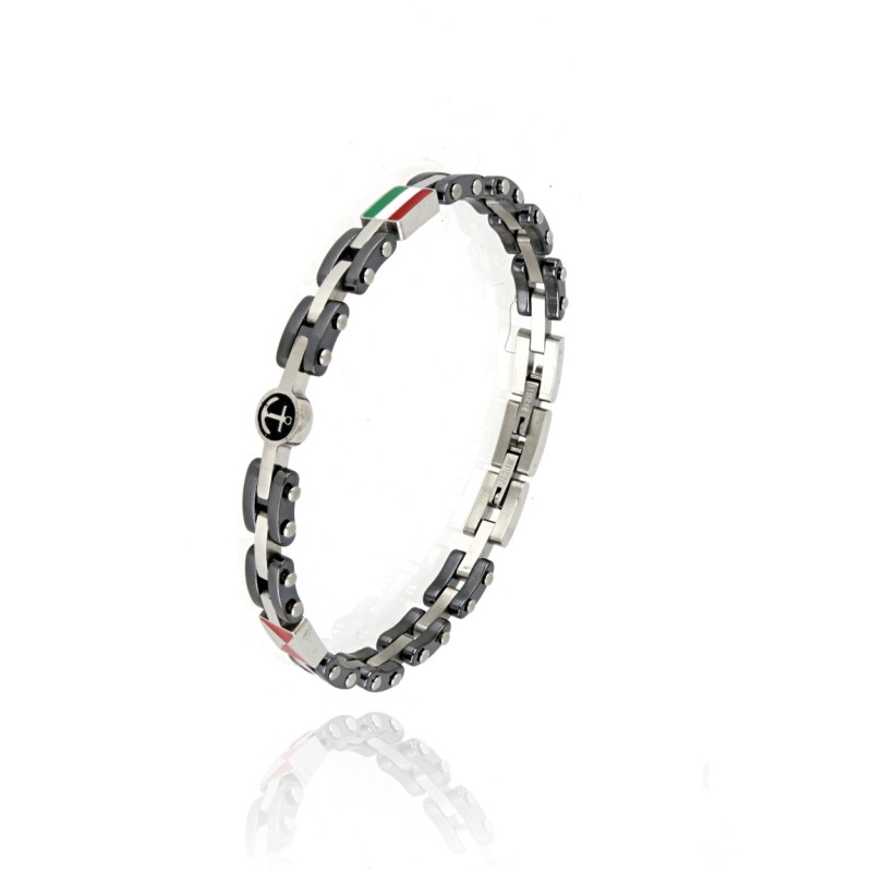 Bracciale in acciaio con bandiere e ancora. L'articolo verrà spedito in confezione originale IL GIOIELLO DI PANI.