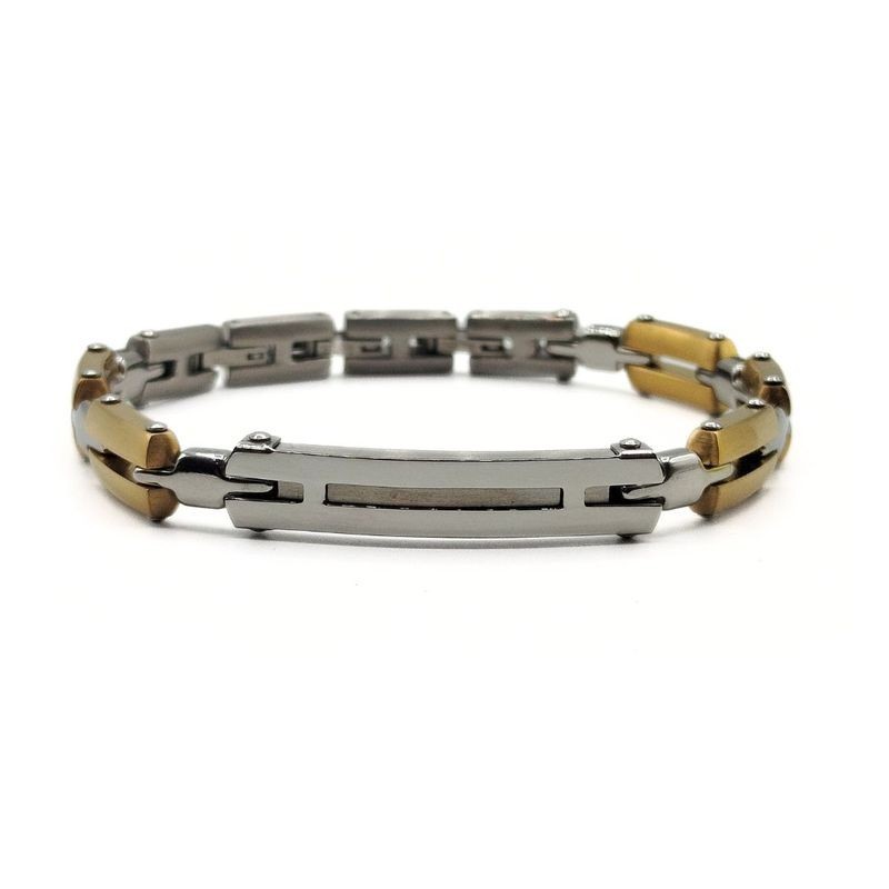 Bracciale in acciaio bicolor con targa. Questo articolo verrà spedito con scatola X LUI.