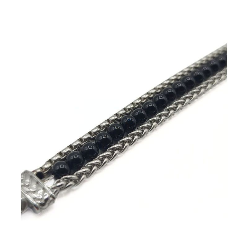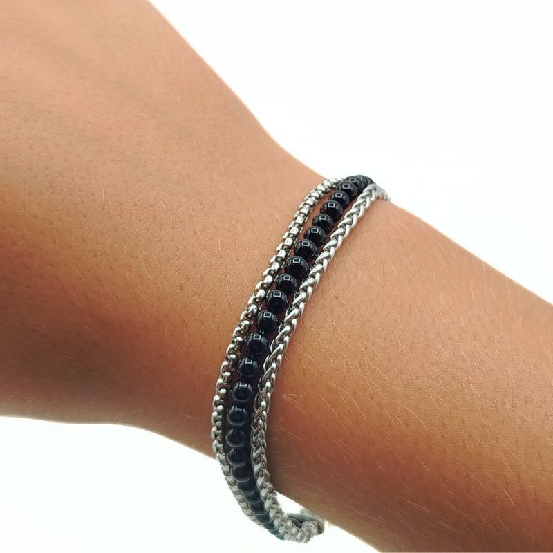 Bracciale in acciaio con tre fili con palline nere e chiusura moschettone. Questo articolo verrà spedito con scatola X LUI.