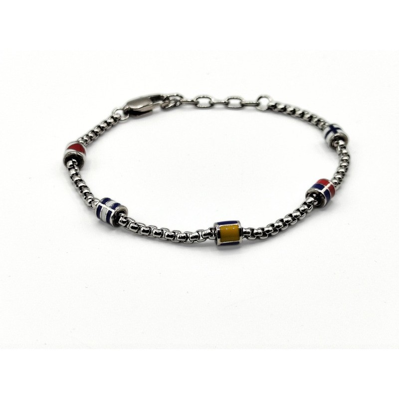 Bracciale in acciaio con bandiere. L'articolo verrà spedito in confezione originale IL GIOIELLO DI PANI.