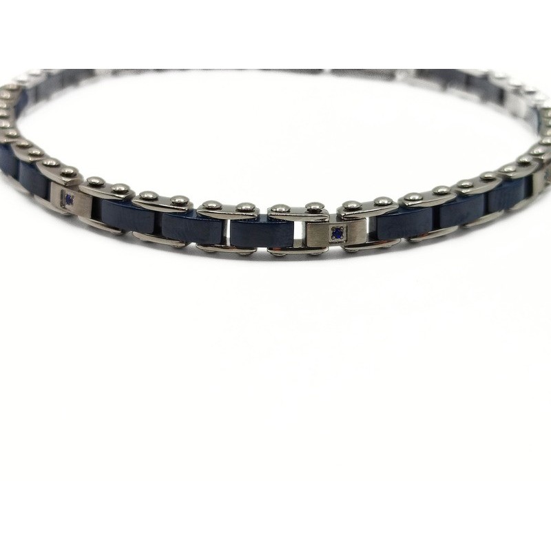 Bracciale in acciaio e ceramica blu. Linea DETTAGLI X LUI. L'articolo verrà spedito in confezione originale IL GIOIELLO DI PANI.