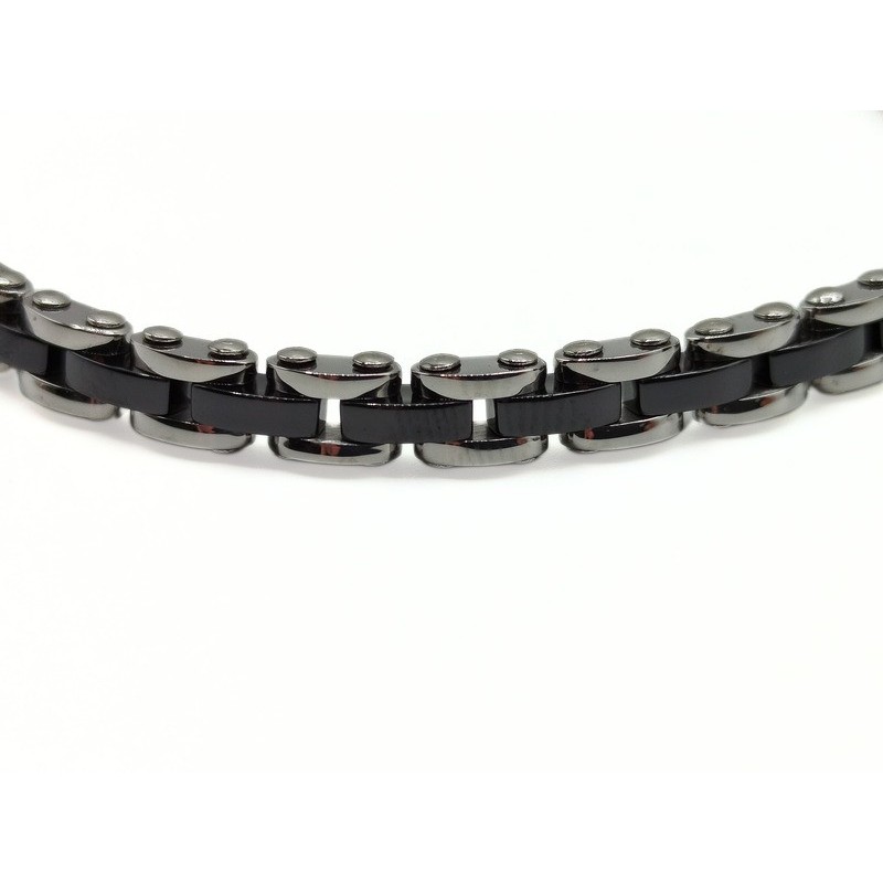 Bracciale in acciaio e ceramica bicolor. Linea DETTAGLI X LUI. L'articolo verrà spedito in confezione originale IL GIOIELLO DI PANI.