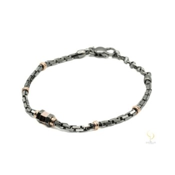Bracciale in argento brunito con elementi. Linea DETTAGLI X LUI. L'articolo verrà spedito in confezione originale IL GIOIELLO DI PANI.