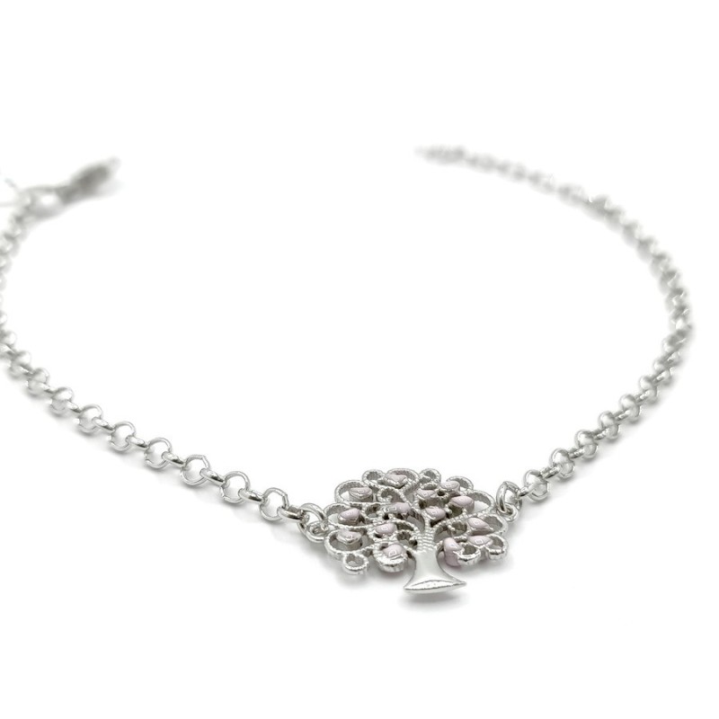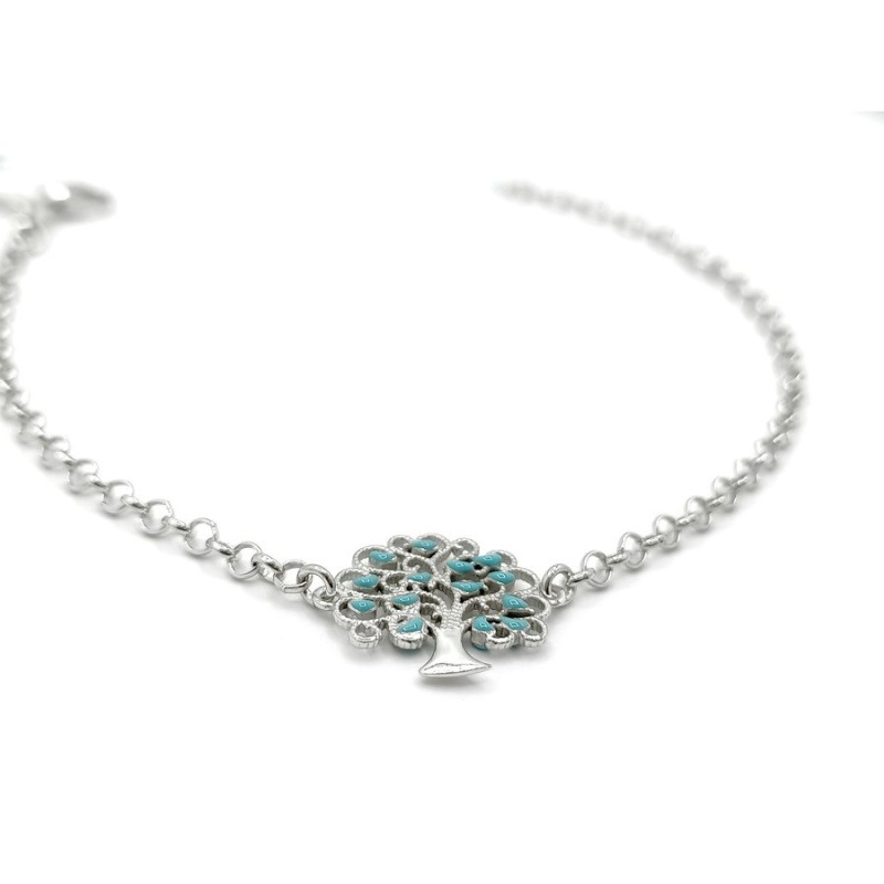 bracciale donna in argento 925% albero della vita turchese e rosa. nichel free