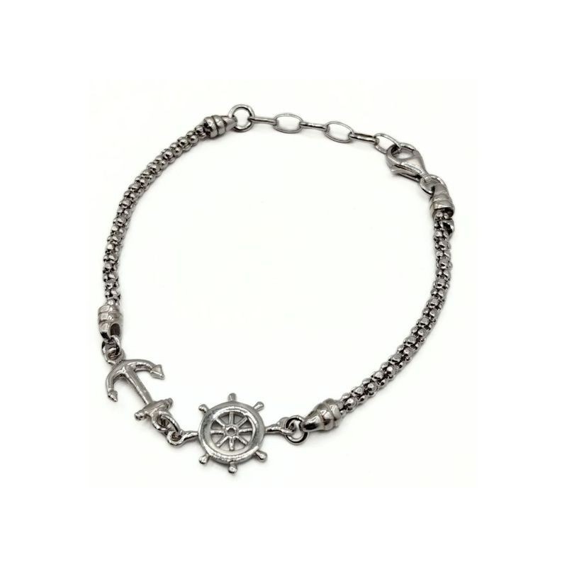 Bracciale fope in argento con ancora e timone, con chiusura moschettone. L'articolo verrà spedito nel suo particolare astuccio X LUI e certificato di qualità che ne attesta il materiale..