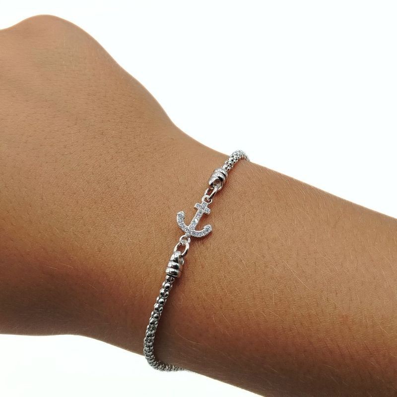 Bracciale in argento con ancora zirconata e chiusura moschettone. L'articolo verrà spedito nel suo particolare astuccio X LUI e certificato di qualità che ne attesta il materiale..