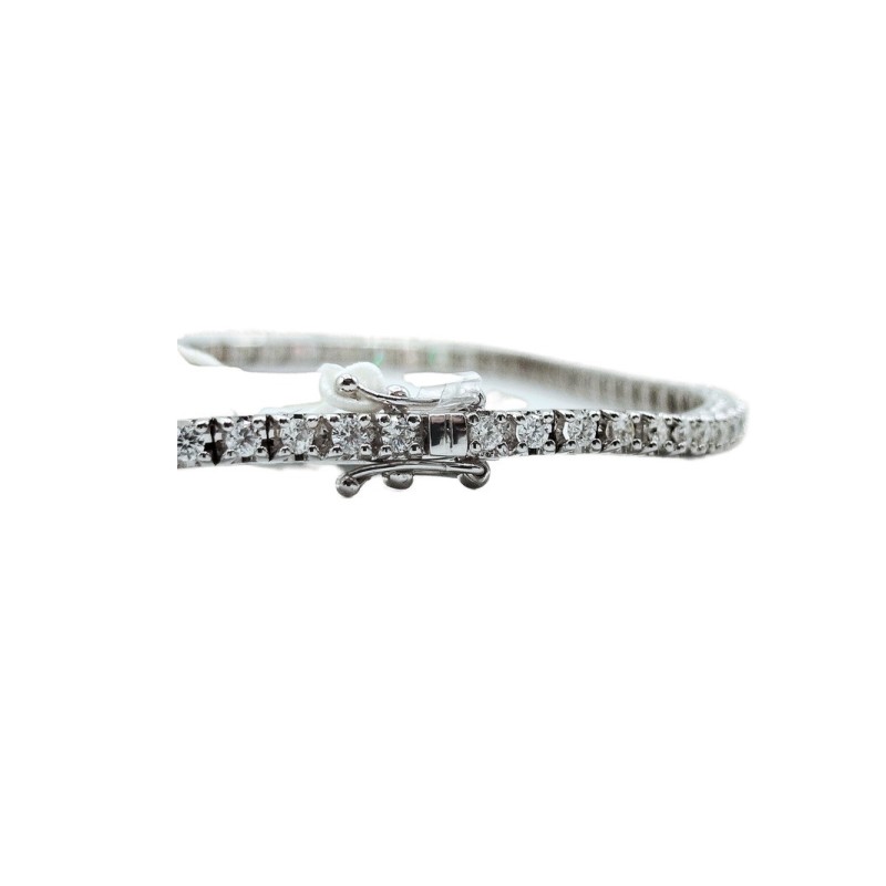 Bracciale tennis in oro 18kt con diamanti taglio brillante G VS 1,58 ct. Una creazione esclusiva che unisce creatività e precisione, regalando un accessorio unico nel suo genere, perfetto per chi cerca qualità e stile. L'articolo verrà spedito in confezione originale.