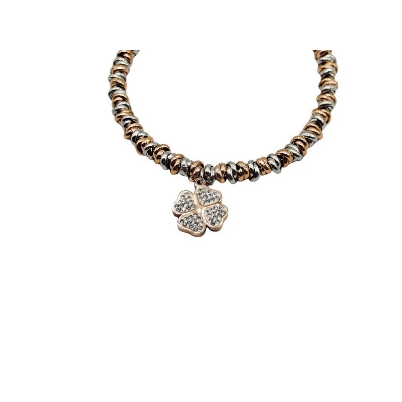 Bracciale da donna in acciaio bicolor con quadrifoglio e zirconi naturali. L'articolo verrà spedito in confezione originale IL GIOIELLO DI PANI.