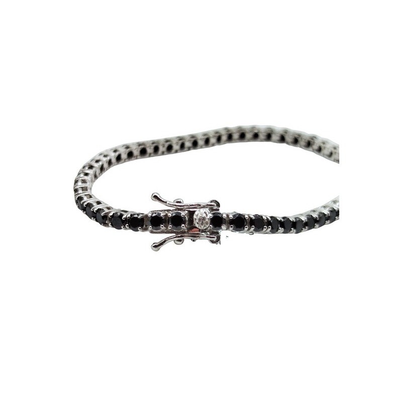 Bracciale tennis in argento 925 con zirconi neri da 3 mm. Misura 16 cm. L'articolo verrà spedito in confezione originale IL GIOIELLO DI PANI.