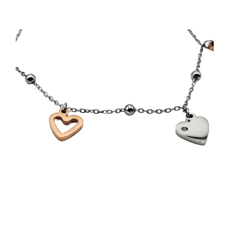 Bracciale in acciaio da donna con cuori e zirconi naturali. L'articolo verrà spedito in confezione originale IL GIOIELLO DI PANI.